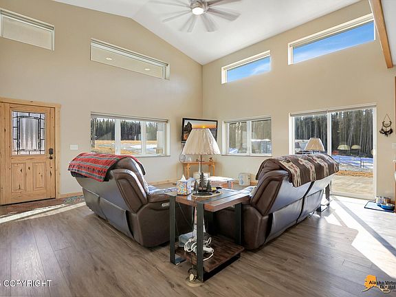 Discover your pilot's dream in this custom built 6* energy rated hangar home on 10 acres w/ horse pasture! The perfect blend of comfort, privacy & functionality, this 3bd/3ba ranch home boasts a 2340 sq ft custom hangar. Enjoy modern touches throughout w/ in-floor heat, solar panel set up, generator shed, vaulted ceilings, quartz counters & triple pane windows. Don't miss this 1 of a kind home!Additional Features: Master bathroom plumbed for steam shower; pipes are located in mechanical room. Perfect horse property with 1 acre of established horse pasture Private access to gravel airstrip (1500' long, 50' wide - no dues!) - airstrip # is FAA8AK8 Hangar boasts epoxy flooring, "Higher Power" 46x13 ft hangar door w/ 12 foot opening plus remotes & separate mechanical room. Back of hangar has 12x12 door & 10x10 door. Back up generator housed in separate shed to stay, wired with transfer switch. Full solar power system set up to stay, not currently connected.