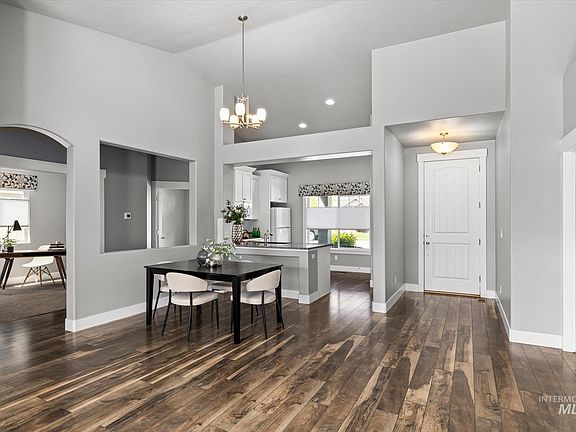 Welcome to the desirable Timbermist community in Kuna! This beautifully crafted single-story home, built in 2017 by Coleman Homes, offers a perfect blend of comfort, style, & functionality. Step inside to enjoy an open-concept layout, featuring a bright living space & a well-appointed kitchen with ample cabinetry, appliances, a breakfast bar, & a spacious dining area—ideal for entertaining or everyday living. The primary suite serves as a private retreat, boasting an en-suite bathroom, a generous walk-in closet, & contemporary finishes. Two additional bedrooms offer flexibility for guests or a growing family, while a dedicated office—easily convertible into a fourth bedroom—adds to the versatility of this home. Custom window coverings enhance the charm, and the home's east-facing backyard provides peaceful outdoor enjoyment. The Timbermist subdivision also offers fantastic amenities, including a community pool and playground. Conveniently located near schools, shopping, and dining, this move-in-ready.