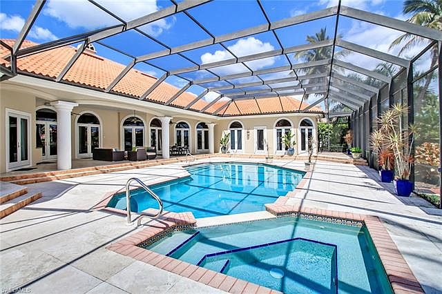 Enjoy spectacular Southeastern vistas of the lake and Golf course from you sprawling lanai. This home leaves nothing to be desired with its ideal floor plan and high end finishes including poggenpohl cabinetry, granite, brand new hard wood floors, new PEX piping, chef's kitchen with sub zero, Viking and Miehle appliances and gas fireplace. The master retreat provides oversized walk-in closets, soaking tub and sitting area. The private suite off the living room features a large bedroom bath and sitting area with it's own entrance perfect for a private in-law, nanny or care giver suite. Home is completed with an inviting pool/spa with new heat pump, massive outdoor living space and a 3 garage. Pelican Marsh offers equity golf, non equity golf, social and dining memberships and is ideally located next door to the upscale shoppes, dining and entertainment of Mercato and a short distance to Naples white sand beaches.