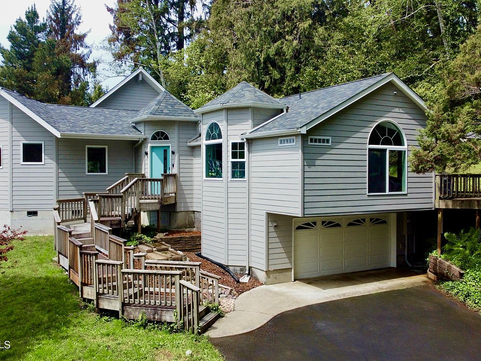 Welcome to Wonderland! Many recent updates makes this unique 4752 sq. ft. home a masterpiece. 5+ acres overlooking Young's Bay and backs up to forest land. Vaulted living room with loft, hardwoods throughout, and a unique kitchen with quartz countertops, 2 islands, and SS appliances. Master Suite includes an opulent bathroom with a private deck and hot-tub. Basement features two rooms, 1/2 bath, laundry room, and door to the garage. Detached finished shop has a partial loft, 1/2 bath, office and is fully insulated. Furnace for heating and Mini-splits for cooling. So much to take in on this breathtaking property. Close-in but private, just minutes from Astoria!