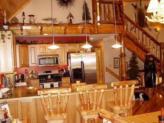Incredible log home at Christmas Mountain Golf Estates. Open plan concept, this 4 bedroom, 3 1/2 bath home has ash flooring, hickory cabinets, custom log railing to upper level, stone gas fireplace, cathedral ceilings, full finished lower level leading out to spacious screened porch. Wrap around decks sports great views of the golf course, amenities of the community include golfing, skiing, heath club and pools. Located 10 minutes from Lake Delton, a tourist destination.
