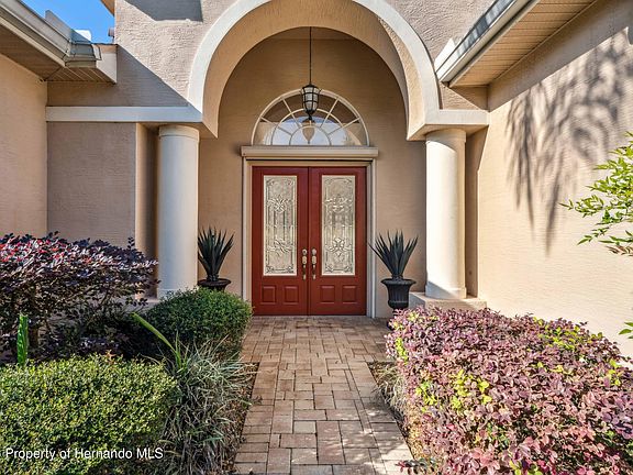 Luxury Golf Course Home in Glen Lakes Estates, Weeki Wachee, Florida Remolded custom floor plan 1997 home. 84 acre Discover elegance and comfort in this beautiful remodeled Palmwood, Cabana Cay courtyard home, perfectly situated on a corner lot with a complete separate parcel included with the price of this home. Views of the 7th hole of the Glen Lakes Championship Golf Course. This exceptional 3-bedroom, 3 bath residence combines luxury finishes, and resort style outdoor living. Property highlights, (En suite living space with separate bathroom and entrance) with custom tile flooring throughout. New roof 2017, with warranty. Professionally landscaped with curb-a lawn and stones, paver drive/walkway, auto screen (Sketterbeater) on garage and front double doors entry. New decorative glass installed in double door entry. New Genie Pro Garage door opener w/remotes, new nylon rollers, and sensors. 5-year warranty, installed 2025. New HVAC 9/2020 with UVC purifier. Diamond Brite pool with fountain and waterfall. Summer kitchen with electric Jennaire downdraft cook top and storage area. Outdoor summer kitchen remodeled 2023. Courtyard painted 2020. CoolDeck painted 2023. Custom primary bathroom completely remodeled including hard surfaces and tile work. This 3-bedroom 3- bath 2 car oversize garage. 2,632 sq. ft. Living Area 3,848 sq. ft. total. Custom wheelchair compliant home. Formal dining room with crown molding throughout. High flat tray ceilings and 12 ft. ceilings throughout. Elegant electric fireplace for cozy ambiance. Heated pool with fountain and waterfall, surrounded by screened courtyard, recently remodeled for entertaining. This home is located on a spring fed lake private view. Deep irrigation well on each parcel. Homeowner has not use vacant land well. whole house has surge protector, and low voltage landscape lighting. Enjoy privacy, luxury, and an active lifestyle in one of Weeki Wachee's premier gated golf communities. From sunrise views over the fairway to peaceful evenings by the pool, this home offers the perfect balance of sophistication and Florida charm. Oversized 2 car garage extra deep, extra shelving & work bench. Primary bedroom has a separate screened patio. New updated fans throughout. Silestone kitchen counters with center island, new pendent lighting. New backsplash and soffit lighting. Dishwasher new 2022. Deep irrigation well. Whole house surge stopper w/15-year warranty 9/2021. This home has many more features ready for you to explore and enjoy. Club membership available, but not mandatory for this home., luxury, and an active lifestyle in one of Weeki Wachee's premier gated golf communities. From sunrise views over the fairway to peaceful evenings by the pool, this home offers the perfect balance of sophistication and Florida charm