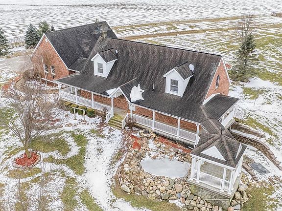 ZOOM SHOWINGS AVAILABLE - This house appraised for $385,000. New Furnace & A/C and New Garage Roof. Nestled on a serene country setting, this 4-bedroom cape cod home is located on 9.46 acres in the award-winning Saline School District. The huge wrap-around porch with gazebo is the perfect place to enjoy the surroundings, including watching deer, turkeys, and other wildlife as well as the peaceful pond. With an open floor plan, the entry level features a kitchen with stainless steel appliances, backsplash, and large island opening to an eating space and spacious living room with a gas fireplace and hardwood floors. The entry level also features a master suite with a walk-in closet and bathroom with two sinks, standing shower, jacuzzi tub and a second bedroom and full bathroom. Upstairs you'll find new carpet in two bedrooms and a loft space, perfect for a den or office area. The full, walkout basement is ready for the new owners to finish. Outside you will find a 24ft by 53ft pole barn. This home also has an attached, oversized 3.5 car garage.