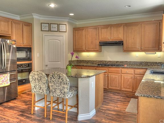 BEAUTIFUL VERY WELL MAINTAINED 4 BEDROOM 3 FULL BATH HOME IN HIGHLY SOUGHT AFTER ORANGECREST! Enter into Large Formal Living Rm, Dining Rm, Continue on to the kitchen with black granite counters with brown accents, black appliances & black sink, Island, Medium Maple Cabinets, and Breakfast Nook. Kitchen Opens to Spacious Family Room with fireplace & crown molding. Downstairs Bath with Shower. Beautiful luxury vinyl plank downstairs, 2018 carpet upstairs, porcelain tile in baths, and upgraded baseboards throughout the home. Walk Upstairs to find a Large Bonus Room with Recessed Lighting and Tile Flooring, Large Master Bedroom with Hallway that leads to His and Hers Large Mirrored Walk-In Closets and Bathroom which includes Corian counters & double sinks. Three upstairs Secondary Bedrooms include Mirrored Closet Doors. New tankless water heater, Ranchio wireless sprinkler controller, Ecobee wireless controlled thermostats; electronic locks on both front and main garage door, RING doorbell. 3 Car Garage and Room for potential RV Parking on right side of home, Garden Shed included. Fruit trees- Orange, asian pear, pomegranate, apple, apricot, avocado, fig, mulberry, walnut, almond and more. Community has top rated schools, including Martin Luther King High.