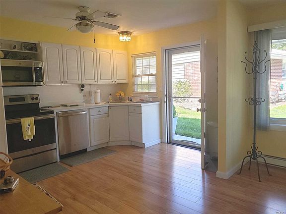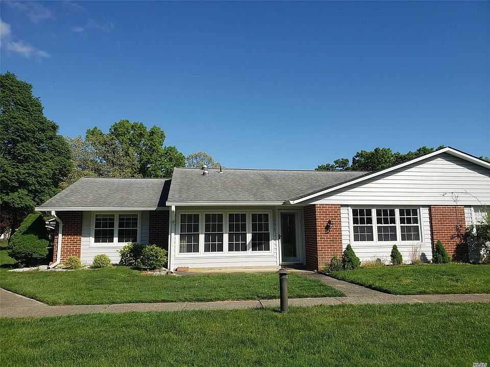Updated Regency with beautiful location. The largest model in Leisure Village, this condo is beautifully located in a park-like setting. Watch the wildlife each day from the enclosed sunroom or outside patio. Updates include kitchen, opened up to the formal dining area, huge living room, laminate floors throughout, (carpeting in bedrooms), updated master bathroom, newer windows, roof, siding and a/c. Walking distance to clubhouse. Taxes with Basic STAR around $3,600. Sale may be subject to terms & conditions of an offering plan. One pet allowed.