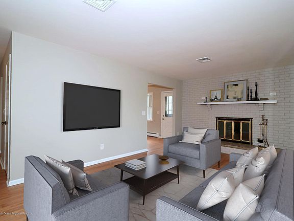 Updated ranch features 3 bedrooms, 2 up-dated full baths, eat-kitchen with granite countertops and s/s appliances, living room with full brick fireplace and sliders to a large back yard. To help visualize this home's floorplan and to highlight its potential, virtual furnishings may have been added to photos found in this listing.