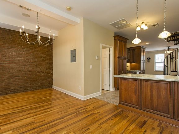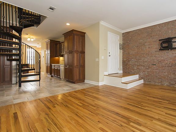 Gorgeous duplex in Downtown Hoboken with 3 Br, 2 baths, 9' ceilings and exposed brick in both the family and dining rooms. Renovated with hardwood floors, custom kitchen with Granite countertops (Verde Leather finish), GE Café Line stainless steel appliances and a 50 bottle wine fridge. Hunter Douglas blinds and a full bath with subway tiles completes the first floor. Beautiful custom Iron staircase leads you to the second floor where you have the master bedroom with a walk-in-closet and two more bedrooms. Large master bath with dual vanity, Carrara marble steam shower and multiple points of water for a spa like experience. The large laundry/ utility/ storage room is also on the 2nd floor for easy access. Common areas include large backyard and storage in the basement. A MUST SEE!!!
