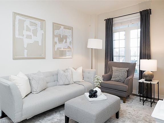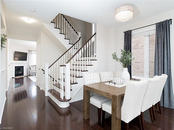 Welcome to the highly sought after Heathwood neighbourhood in Scott. This Azalea model 2206 sqft + Finished basement offers a luxurious feel from the moment you drive up. The charming front porch welcomes you in to the formal living and dining space with dark hardwood floors, 9 ft ceilings and oversized windows.The family room with gas fireplace overlooks the rear yard and is open to the sparkling white kitchen with granite countertops, pantry, backsplash, stainless steel appliances and spacious eat-in area. Walk-out to your poured concrete patio that is the perfect extension of living space. Inside entry from the garage & convenient main floor laundry room. Up the hardwood stairs to the second floor you have 4 spacious bedrooms as well as a reading/office nook. Primary bedroom offers an oasis feel with large windows, walk-in closet and a well appointed ensuite with double sinks, soaker tub and separate glass shower. Down to the basement you have another full bathroom, spacious rec room and separate finished room for a home office or for guests. Located two doors from the park with incredible views of the forest and escarpment. Enjoy taking a short walk to downtown Milton, easy access for commuters- You will love living here.