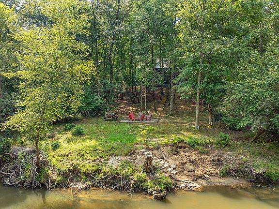 Riverfront Turn-Key Cabin Retreat! Welcome to your dream river getaway with -+140ft of River frontage. Whether you are looking for a full time, getaway or investment, this beautifully furnished 4-bedroom, 3-bathroom cabin offers the perfect blend of rustic charm and modern comfort. Nestled along a scenic stretch of river, enjoy soothing water views and sounds from multiple areas of the home, including a private upstairs balcony. Step inside to a cozy living room with a stunning stone fireplace and an open-concept kitchen featuring granite countertops, wood cabinets and stainless appliances. Deck space where you can hear the sounds of the river is ideal for entertaining. Cabin features rich wood flooring that adds warmth and character to every room. Complementing this are the pine wood walls and ceilings, which bring a natural, rustic charm while enhancing the cozy, cabin-like atmosphere. The main-level bedroom includes a bathroom with a double vanity, walk in shower and convenient laundry access. Upstairs, find a peaceful bedroom retreat with a walk-in closet and private balcony overlooking the river. The sleeping loft is fun for any age. The lower level offers two bedrooms and a full bathroom and private deck overlooking the river. The dedicated media room is ideal for movies, gaming or entertaining. Step outside to your own private oasis: a hot tub overlooking the river, a firepit area just steps from the water, and a level yard perfect for pets and children alike. A bonus shed provides great storage for tools, gear, or even an ATV. A truly turn-key setup, just bring your suitcase and start enjoying cabin life on the river! Amenities include 3 pools(1 indoor open all year), river and creek access, parks, gated entrance, fitness center, pickleball and mini golf. Enjoy mountain living at wineries, antique stores, cute Downtown Ellijay, biking, hiking and much more!