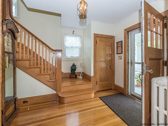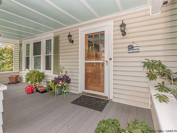 This Super Charming Art and Crafts style home is in great condition and has been lovingly cared for by it's current owner. The owner believes the home is one of the original Sears kit homes from the early 1900s. For starters there is a wonderful rocking chair front porch for those lazy summer days. It's the way life used to be. Entering into the foyer of this home you take a walk back in time to gorgeous hardwood floors, original moldings, a unique wood banister and original doors with glass knobs. There are so many nice details and a lot of the woodwork has been stripped down to the original wood. Although the old charm has been left alone this home has certainly kept up with the times when it comes to maintenance. There are insulated replacement windows throughout, a new roof in 2017, updated boiler 2008, New super store HWH 2018, 200 amp electric and Central Air. The owner has also had the home re-insulated. There are 2 renovated full baths with a vintage flair, one on the main level and one up. Also, loads of storage here with a walk up attic and full basement too. The kitchen is updated but this owner knew enough to keep some of the original built in cabinets that are unique to this home and what makes it so special. And that's not all. There is a glassed family room off off the back with skylights and a vaulted ceiling overlooking a nicely landscaped backyard with a blue stone patio. Just enough space for family and friends to gather. The 1-car garage with a carriage style door completes the package. This home is set on a nice residential Kingston Street right between the Historic Uptown Stockade area, the Historic Rondout Waterfront and the Broadway corridor with it's newly energized art scene and Ulster County Performing Art's Center. Whether walking or biking it's all just minutes away. Located approx. 2 hours out of NYC with buses running all day back and forth from NYC right uptown.