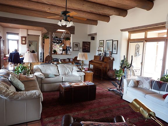93 Apache Park Lane is a Rammed earth home (2' thick walls) with radiant heat, highly energy efficient. Some of the many unique features... tongue and groove 12' ceilings, custom masonry kivas, The master onsuite has its own kiva in the sitting area, walk-in closet, full bath/separate shower, & walk-in closet. Two other bdrms and one bath...2150 sq ft living space on 14 acres, front and back courtyards. Attached 3-car garage, workshop, horse stalls, RV barn, lots of storage, adjoins Gila National Forest.