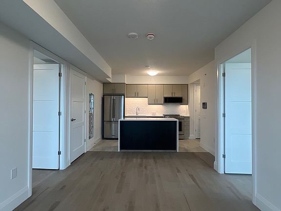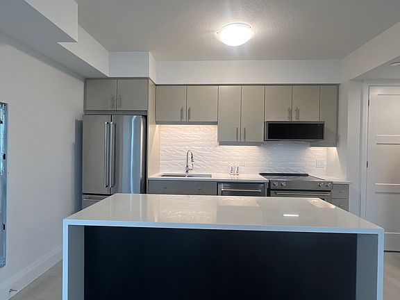 Open-concept kitchenQuartz countertopsStainless steel appliancesUpgraded center islandPrivate balconyNatural lightWalk-through double closet
