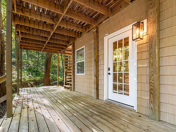 Modern finishesOpen-concept floor planFarmhouse sinkWrap-around deckSeasonal creekSubway tile backsplashVaulted ceilings