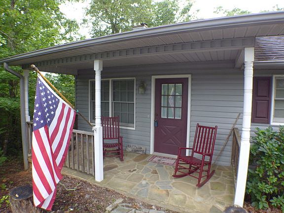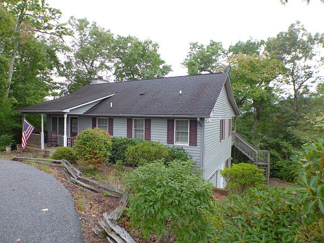 MOTIVATED SELLER has just REDUCED THE PRICE, and wants you to BRING him an OFFER and furniture is negotiable!! The long range views from this top of the mountain home are amazing!! This home is located in a great neighborhood off pretty Wayah Road in the Cartoogechaye area of Franklin. Inside, this 2 bedroom, 2-1/2 bath home is an open floor plan with cathedral ceiling for an even more spacious feeling. In addition to the main level living space with the open concept, there's the master bedroom & bath plus a half bath for visitors. Passing through the glass sliding doors from living room is the full length porch, a great location to relax and watch those ever-changing mountain views. When too chilly to be outside, the woodburning stone firelace will beckon you to gather around & stay warm. Downstairs is a 2nd bedroom and full bath plus a large family room /rec room. Also at the lower level is space for a workshop plus a single car garage. Access is great with paved road to the door, and it's community maintained. Home is move-in ready. HOA fee for this nice neighborhood is $375/yr.