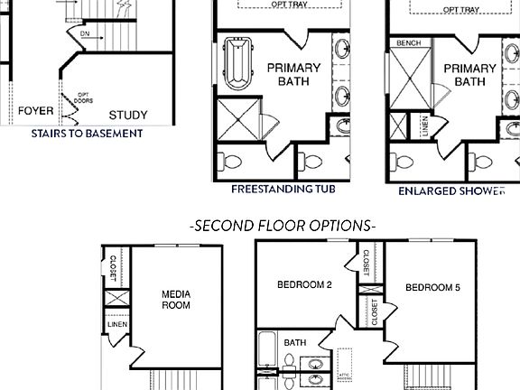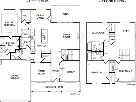 The Brooks Plan is a beautiful blend of style and function, featuring four bedrooms and 3.5 baths. The main-floor master suite offers a separate tub and shower, double vanities, and his-and-her closets. An open-concept breakfast room flows into the family room, while a walk-in pantry adds convenience. Three additional bedrooms upstairs provide ample space, making this home both elegant and practical.