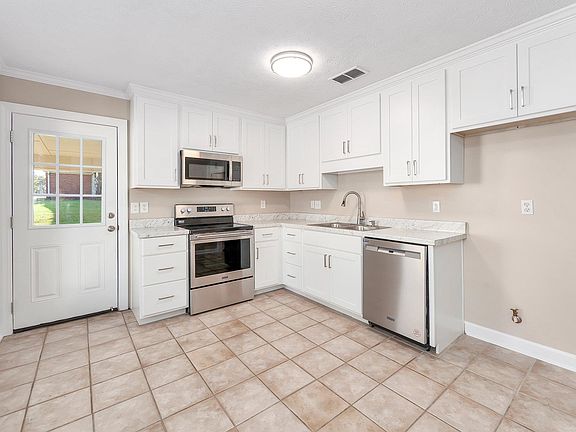 3 bed/2 bath remodeled home in North Jackson - no city taxes! Property features new flooring in living areas and bedrooms; new interior and exterior paint; new custom kitchen cabinets and countertops; new stainless steel appliances; new light fixtures; new posts and shutters, several new bath fixtures; formal dining room; nice sized great room with fireplace; separate laundry area; covered front porch' screened porch; double carport with storage area and a storage building. Owner/Agent