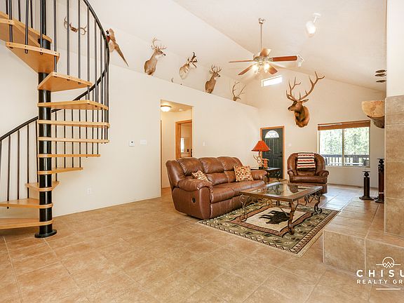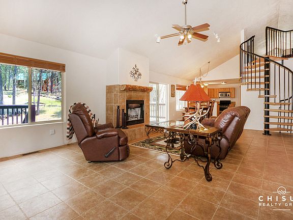Come explore this cabin in the woods that feels private yet is only a short drive to all the fun Angel Fire has to offer. This house is also within walking distance to Monte Verde Lake and the Lady Slipper hiking trail! Outside you'll find a wooded setting with plenty of outdoor living opportunities plus a regraded driveway and new concrete stairs leading up to the house. Inside, you'll discover an open concept great room with tile flooring, vaulted ceilings and a wood burning fireplace that's the focal point of the living space. The kitchen is spacious with solid wood cabinets and the two bedrooms are on the main floor with a spiral staircase leading up a large sleeping loft. The large covered deck off the front is perfect for relaxing summer days and the wrap around deck provides space to spread out and enjoy some peace and quiet. This home comes mostly furnished and ready to enjoy!
