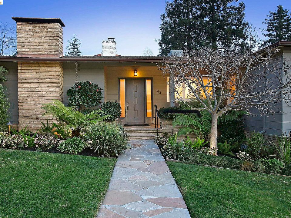 This stylish mid-century home is a tranquil retreat, featuring a fantastic floor plan for easy living. Beautifully sited on a tree lined street, 93 Cambrian Ave. has been meticulously maintained and upgraded. The stunning living room & dining room feature gorgeous floor to ceiling windows and French doors to the private patio, showcasing the home’s wonderful indoor-outdoor living possibilities. The spacious chef's kitchen with high-end appliances, including Wolf range, features an island for casual dining and a wet bar/prep area. The main floor features 3 spacious bedrooms, including a glamorous primary suite with 2 large walk-in closets, bath with soaking tub, dual sink vanity and Bay views. The lower level offers great flexibility for any buyer’s needs, including a light-filled bedroom suite with French doors to a private patio. The additional lower level room would be an ideal family room, office or guest space. 2-car garage with interior access & ample storage.