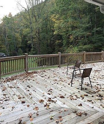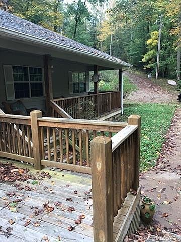 Don't miss out ! Great Mountain home 5.9 acres Near Pisgah Forest land. Private, Bold Creek frontage on property. Pond, Fire pit, storage shed, Private Contemporary home has 1750 Heated space; Huge Deck and front and back covered porch (s) - Great for entertaining... 3 bedrooms, 2 baths, Kitchen, dining, Hardwood Flooring , Cathedral / Tray ceilings. Master Bedroom and Bath needs flooring and a little bit of trim work around windows. Some furnishings included.