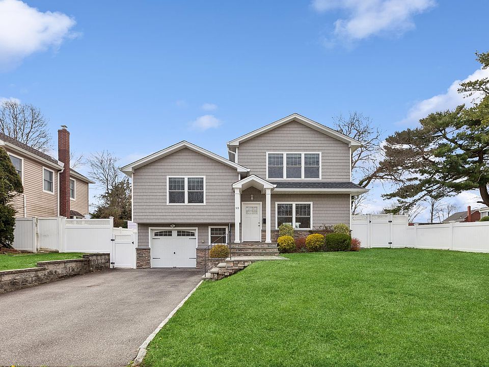 Welcome home to this beautifully updated 4-bedroom, 3 full bath split-level home. Meticulously renovated in 2017, this residence effortlessly combines modern sophistication with comfortable living. Upon entering, you're greeted by an inviting open-concept living space, perfect for both relaxing evenings with family and entertaining guests. The kitchen, a focal point of the home, features wood cabinetry, quartz countertops, and stainless-steel appliances. On the second level, there are two bedrooms, each offering ample space and natural light. A tastefully appointed full bath serves this level, providing convenience and functionality. Nestled on its own private level, the primary bedroom suite boasts vaulted ceilings and the primary bath is a spa-like oasis, featuring contemporary fixtures and finishes, while a spacious walk-in closet offers plenty of storage. Outside, the property has an abundant space for outdoor enjoyment, whether it's hosting gatherings, gardening, or simply unwinding amidst the tranquility of nature. Conveniently located in Plainview, this residence offers easy access to nearby amenities, schools, parks, and major transportation routes, ensuring both comfort and convenience. Don't miss the opportunity to make this meticulously crafted home your own and step into a world of timeless elegance and modern comfort.
