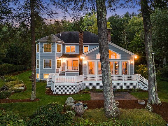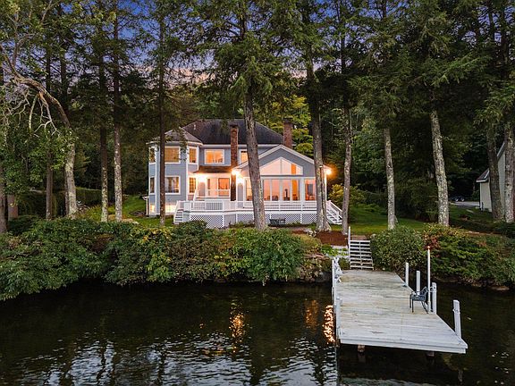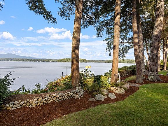 Don’t miss the chance to own this breathtaking waterfront home overlooking Lake Winnipesaukee with sweeping views of the Ossipee Mountains and nineteen-mile bay. You will appreciate the serenity in this quiet area of the lake well protected from the hustle while still maintaining ease of access. The house is ideal for gathering together to appreciate all that lake life has to offer. As soon as you arrive, you notice the carefully designed landscaping and sweeping windows that unite the home with its beautiful surroundings. The main level features a primary suite overlooking the lake. The kitchen, with granite countertops and breakfast bar, opens right into the dining room and living room, featuring gleaming wood floors. The highlight is the sunken family room that opens to the vast lakefront deck, with a cathedral ceiling, fireplace, oil stove, and a wall of windows offering incredible views. Upstairs, you’ll find two additional bedrooms, one with an en-suite bath and another full bath, plus a rec room and den. The walk out lower level has an additional 400 sq. ft. finished space and tons of storage and room for a home workshop. The attic above the oversized attached two-car garage provides even more storage space. Plenty of entertaining space on the large deck, patio and level lawn that leads to the permanent dock and sandy bottom shoreline. This is the home where you’ll make memories!