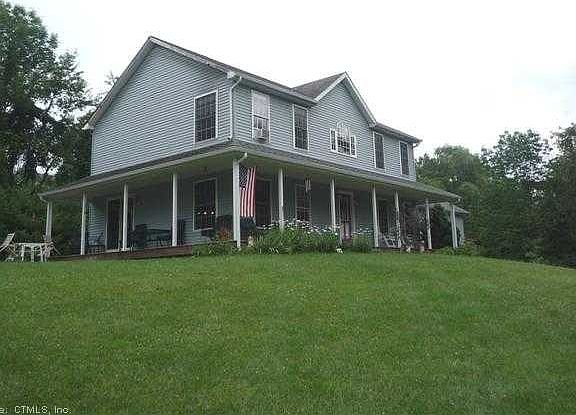 Country farmhouse located on 3.49 private acres with distant views. This home features open floor plan (perfect for entertaining), formal dining room, den, harwood floors, gas fireplace, granite countertop in kitchen and updated full baths with new quartz countertops, subway tile, tiled floors and glass showers. Enjoy the sunsets while lounging on the expansive, newly stained wrap around covered porch. On the second floor you will find a master suite with full bath and walk-in closet, two large bedrooms and an office (possible 4th bedroom) all with new carpet. This two car attached garage offers easy access to main level and features a pocket screen door as well as steel door. Walking and hiking trails. Conveniently located, 4 minutes to center of New Milford.