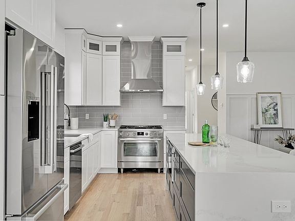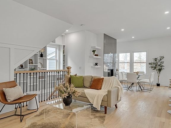 Beautiful fully renovated four-bedroom condo in one of West Roxbury’s most desirable neighborhoods. Stunning chef's kitchen features expansive 9' waterfall island, Bosch stainless steel appliances including 36" stove, quartz countertops, bountiful cabinetry, and direct access to 21'x8' private deck. Elegant entryway offers mudroom with bench and custom built-ins, oversized entry closet with sliding barn door, and common bath with walk-in shower. Contemporary gas fireplace adds warmth and ambience. Spacious primary suite features walk-in closet and spa-like bath with enormous walk-in shower and double vanity. High ceilings, abundant natural light, central AC, and gleaming hardwood floors. All four bedrooms offer ample closet space. Unit offers dedicated storage room and easy access to common storage area with direct access to huge yard with great space for gardening and outdoor entertaining. Walk to Highland Commuter Rail Station, Roche Bros., and neighborhood shops and restaurants.