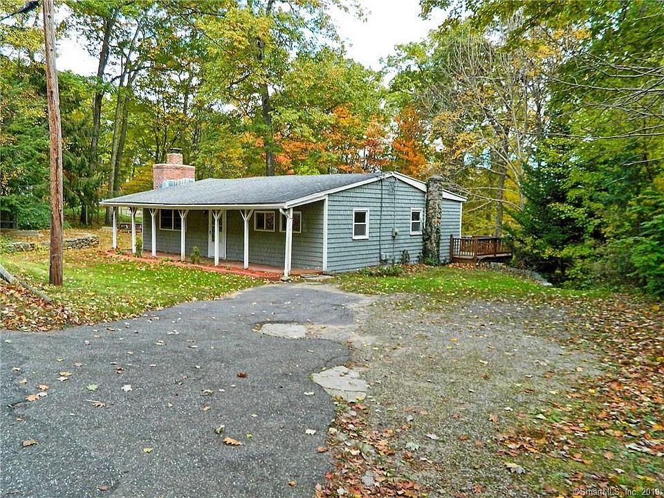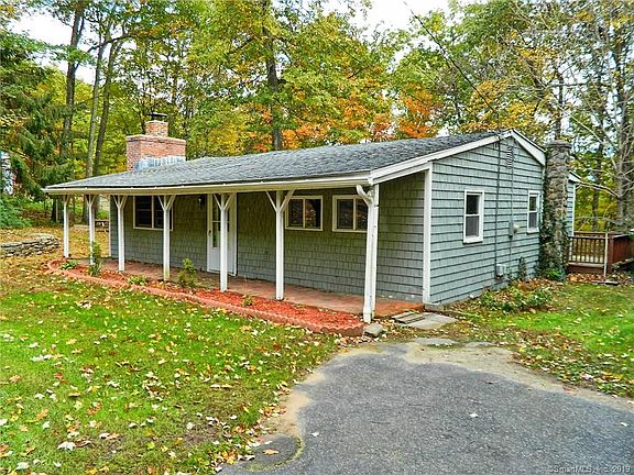 Get ready to kick back and listen to the sounds of nature from this great ranch home. The covered front porch will be a great place for a bench, swing or chairs or sit out on the back deck and look out over the lovely backyard. During the warmer months you will love the close proximity to Staffordville Lake with public beach area. The home has a nice rustic charm with exposed beam trim and stone accent wall perfect for a wood stove. The kitchen has great counter space, newer sink faucet and stainless appliances. The spacious bathroom features new vanity, mirrored cabinet and has room for shelving or close it off for a linen closet. There are some newer windows, a new 50-gallon water heater and submersible well pump. The basement also offers good storage space and is accessible from outside under the deck (no access from inside home. There is a spacious side and backyard that will be ideal for gardens or entertaining, complete with horseshoe pit, picnic table and a fire pit. The lot also features lovely stone walls and shed for outdoor storage.