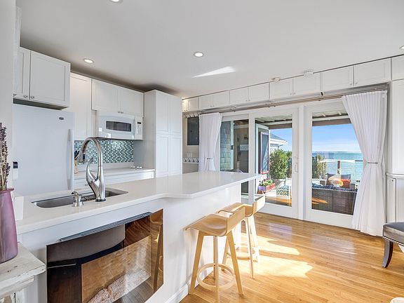 Experience blissful waterfront living in this southwest facing, second floor pied-a-terre, nestled in the heart of the West End. Wake up to the soothing sound of waves and feel the breeze on your exclusive use deck. The open-plan layout, with every detail crafted to perfection, is bathed in natural light and offers breathtaking views of the Bay and Long Point Lighthouse. The chef-inspired kitchen, complete with a beautiful quartzite island seating for four, invites culinary creativity. The queen-sized bedroom, tucked behind sliding doors, offers privacy and warmth, and can easily become part of the living space. A wall of glass sliders opens to the unit's exclusive deck, effortlessly connecting indoor comfort with outdoor serenity. Enjoy the convenience of split air conditioning, an in-unit washer/dryer, additional storage, one parking space, and access to a shared deck with direct beach access. Sold furnished with few exceptions, this turnkey home boasts exceptional rental potential. Seller welcomes offers with requests for buyer concessions.