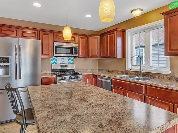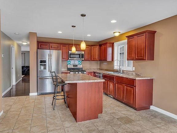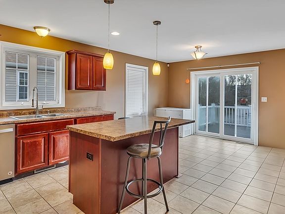 This well-maintained home boasts a stunning kitchen with maple cabinets, stainless steel appliances, a central island, tile flooring, and an eat-in area. Enjoy the outdoors on the oversized, maintenance-free Trex decking accessed through a sliding door. The living room is bathed in natural light from triple windows, complemented by gleaming hardwood floors. The generously sized bedrooms feature ceiling fans and plush carpeting. The full bath upstairs offers a double vanity, tub/shower unit, and stylish tile flooring. The lower level provides a spacious area suitable for a family/game room or additional living space for in-laws, teenagers, or young adults. The lower-level full bath is thoughtfully designed, featuring a Jacuzzi tub, extra-large stand-up shower, tile, and recessed lighting. Conveniently located near shopping, highways, recreation and more! This home has an assumable VA loan with a 2.5% interest rate for qualified buyers! Schedule a showing today!