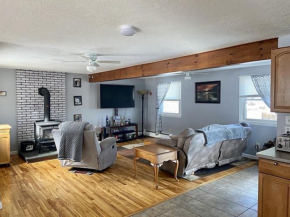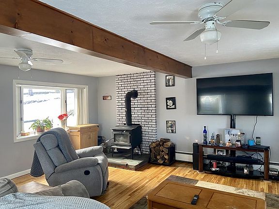 Move right into this charming one level living ranch! This home features a beautiful open-concept floor plan. Spacious kitchen/dining/living room perfect for entertaining! Updated appliances in the kitchen and update 200 amp Electrical service! Good size living room with brick woodstove and a large picture window offering lots of natural light. Sliding doors from Livingroom overlooks a nice deck! Nice size 3 bedrooms w/hardwood floors. New carpeting in bonus room in basement, most rooms freshly painted. Walkout basement is finished with bathroom and mudroom, great for a second Livingroom, playroom or office. Double driveways for ample parking. New boiler and vinyl siding This home is ready for new owners to move in and create memories that will last a lifetime! Close to schools, shopping, Rt 2.