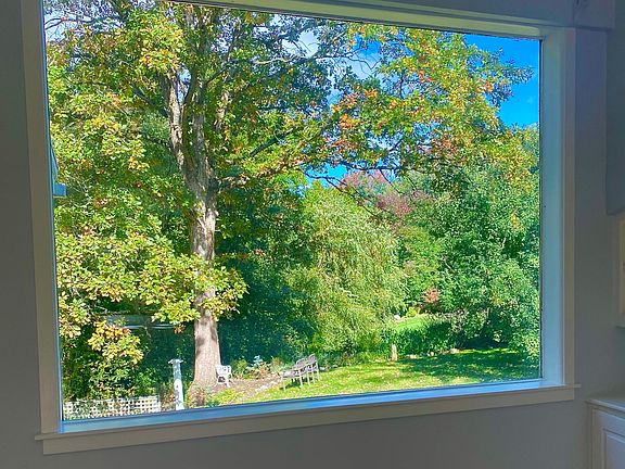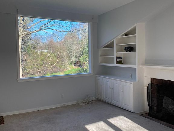 Freshly remodeled and painted house, with new kitchen, bathroom, shower, air-conditioning, ceiling fan, gas fireplace, and designer window treatments. Living room, has wall of shelves with professionally designed and installed cabinets below. In rear, there is a brick patio with Weber grill, teak table and chairs, surrounded by beds of perennial flowers, and lawn sloping down to ornamental pond. One-year lease required. Security deposit equal to one-months rent. Renter pays gas, water and electric utilities. No smoking in the house. Parking for one vehicle in driveway.