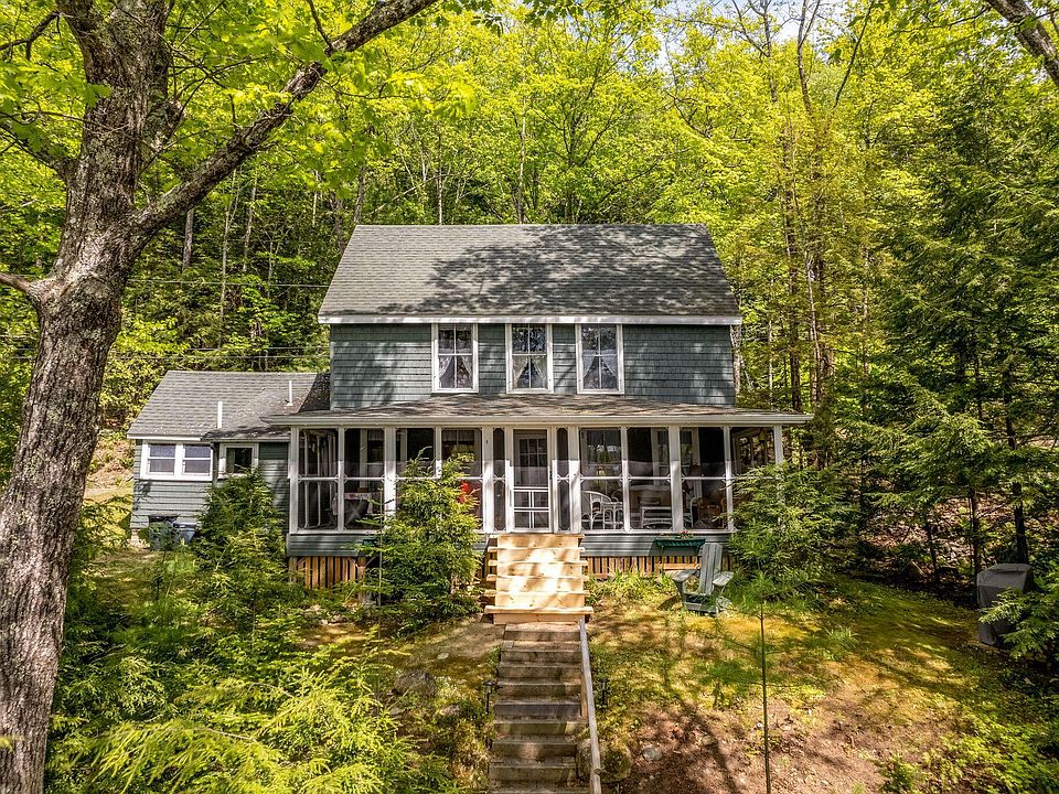 Great Pond, Belgrade Lakes - - Here's a wonderful cottage on spectacular 8,239-acre Great Pond - - made famous as the setting for Ernest Thompson's book and movie ''On Golden Pond.'' This is a very charming cottage with open living room/dining room that's perfect to hold lots of guests or just as your own retreat. Kitchen and bath have been tastefully updated and there are birch floors on the main level. Large front porch the entire length of the cottage is perfect for reading, games, sharing meals and enjoying spectacular sunsets. With 4 bedrooms, the cottage can sleep 9. There is about 100' of shoreline and much privacy on both sides, as well as a dock for boats, separate swim dock and a section of frontage that is gradual and makes a great swim area. Belgrade Lakes Village is 10 minutes away and offers restaurants, general store, bakery, golf course and more. Easy drive to I-95, Augusta, Waterville and Farmington to explore. Belgrade and Rome have a very active land trust so there are numerous trails and scenic areas. Owners have had great success renting the cottage also. Boat, fish, swim or just relax at your own retreat!