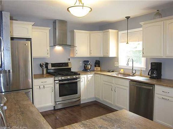 Recently updated Raised Ranch, thought and detail was put into every area of the house. Kitchen: Travertine Countertops, LG Stainless Steel appliances (french door refrigerator with pull out drawer freezer), Gas Stove, separately located microwave oven, quiet close drawers and under-mounted sink with separate garbage disposal. Premium Armstrong Laminate flooring throughout living area, Open Floor Plan gives a smooth flow and transition from Kitchen to Dining Room to Living Room. Custom Solid Core Doors throughout the house professionally installed. Main Bathroom: Espresso tile, extra deep soaking tub, tiled shower walls with double D shaped shower curtain rod. Master Bedroom: Dark Laminate changes the tone for the Master with a large 8 foot wide closet with matching custom sliding doors. Master Bathroom is set with large 12x24" tile, white PVC wainscoting and white stand up shower is offset nicely with a light brown paint and brushed copper fixtures. Bedrooms: All have ceiling fans and separate Laminate floor color from main living space. Basement: Fire Rated door separates garage from house, carpet in lower level, fully finished, solid wood beam support over 12" square with ample clearance for those passing under it. 1/2 bath also has hookups for washer and dryer(propane dryer hookup is provided. Sliding door leads to a 16x14 deck which then leads down to a 2nd tier lower 16x24 deck. Railings are white PVC and will not rot or need to be painted if maintained, decking is a composite material with hidden screws and no joints. Garage: Newly installed R13 garage doors with automatic openers. Neighborhood Description This is a very friendly and quiet neighborhood. This is very kid friendly neighborhood that is within easy walking distance to Mathewson School. Also close to Down Town Milford, easy access to Rt. 15(Merrit Parkway), Eisenhower Park, The Orchards Golf course and Grassy Hill Country are near by. All the while being far enough away from the hustle & bustle that you can take alternate routes to avoid it should you wish.