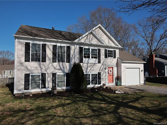 Bright and Beautiful Well maintained Contemportary Raised Ranch with a Colonial Look Great alternative to condo living Large Master Bedroom with Walk In Closet on main living level, open living and entertaining space~ Flex room (currently used as additional bedroom with unfinished bath in the lower level Beautiful fully fenced yard with pool and multilevel deck Minutes to historic downtown Mystic, local beaches, schools, medical facilities , Casinos, EB and Pfizer~