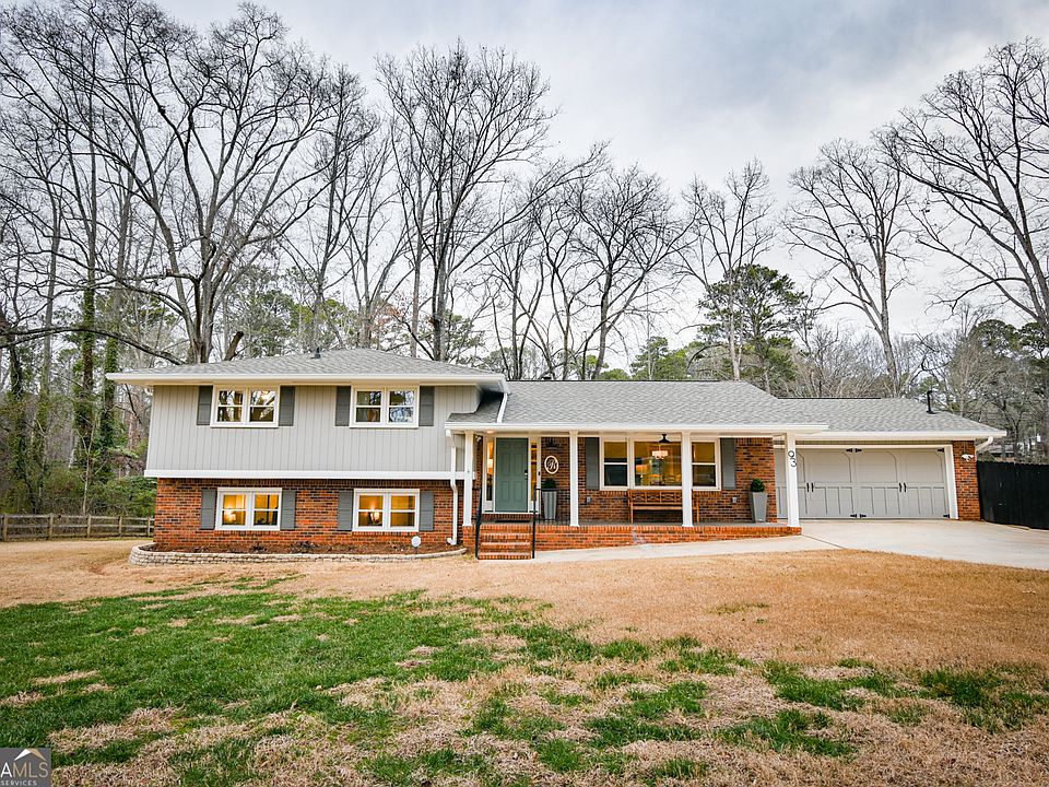 Welcome home to this stunning 5-bedroom, 3-bath home in the desirable Deerfield Subdivision in Covington. The freshly painted exterior and a classic rocking chair front porch create inviting curb appeal from the moment you arrive. Inside, serene colors and tasteful finishes set the tone throughout. The foyer opens into a welcoming living room, leading to a beautifully appointed granite kitchen featuring subway tile backsplash, stainless steel appliances, and a large center island-perfect for gathering and entertaining. A spacious dining room and open and bright sunroom offer ideal spaces for both hosting and everyday living, while a home office/flex room and additional storage complete the main level. Gleaming hardwood floors flow through the main living areas. Upstairs, you'll find two generously sized secondary bedrooms and a full tile bath, along with a spacious primary suite complete with its own private full bath. The lower level offers even more living space with a cozy family room featuring a gas log fireplace, two additional bedrooms, a full bath, and a laundry room. Durable LVP flooring runs throughout the lower level for both style and functionality. A private patio overlooks the backyard and a peaceful creek that runs through the property. A deck off the sunroom leads to a private backyard oasis with a saltwater in-ground pool, hot tub, and firepit-perfect for relaxing or entertaining year-round. Windows have been replaced throughout the home (excluding the sunroom) with a transferable lifetime warranty. Deerfield is a quiet, established swim and tennis community with a voluntary HOA. Conveniently located just minutes from Downtown Covington, shopping, dining, and I-20, this exceptional home offers space, comfort, and lifestyle in one perfect package.