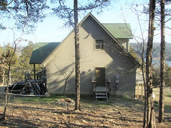 Fantastic custom-built lake home for sale on World Class Bull Shoals Lake! Architectural design affords great views of the lake from the home. Paved county road leads to the private wooded setting making this your perfect private retreat! Property includes ownership of a 10'x28' boat slip (1 of 8) on a private dock with a fiberglass locker, large swim deck and fish cleaning station. The lake is only a short walk from the home to the concrete steps leading to the deck. Features of the home include 3-4 bedrooms, 2 full baths, one with jacuzzi, awesome loft area with water views, beautiful stone fireplace, full basement with finished areas and huge garage. Large wrap around deck provides plenty of space for outdoor entertaining. Top of the line construction and Pella windows. High speed internet available. Call soon! Don't miss your chance at this immaculate lake property, ready for your family!