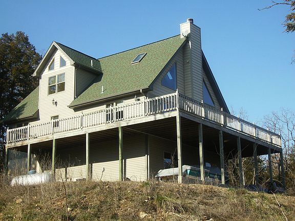 Fantastic custom-built lake home for sale on World Class Bull Shoals Lake! Architectural design affords great views of the lake from the home. Paved county road leads to the private wooded setting making this your perfect private retreat! Property includes ownership of a 10'x28' boat slip (1 of 8) on a private dock with a fiberglass locker, large swim deck and fish cleaning station. The lake is only a short walk from the home to the concrete steps leading to the deck. Features of the home include 3-4 bedrooms, 2 full baths, one with jacuzzi, awesome loft area with water views, beautiful stone fireplace, full basement with finished areas and huge garage. Large wrap around deck provides plenty of space for outdoor entertaining. Top of the line construction and Pella windows. High speed internet available. Call soon! Don't miss your chance at this immaculate lake property, ready for your family!