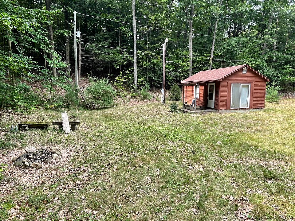 Several very nice building sites on this property (build on a walkout basement, build in the middle of the woods, build on top of a hill, the choices are yours to make) OR use it as a get-a-way spot. There is a small cabin with electric heat and water that could be the perfect spot for a hunting camp, or just a place to relax and commune with nature. There is an outhouse as well but you could install a septic system to modernize the nature experience. Call today for your private showing.