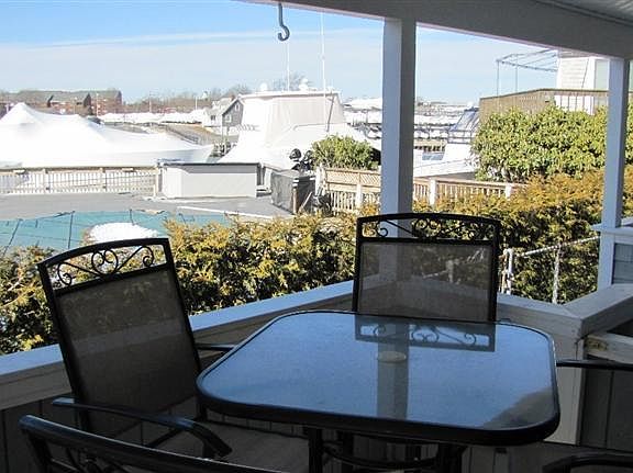 Falmouth Heights on Falmouth Harbor, Quayside Arms Condominiums . Relax and take in the nautical activity of Falmouth Harbor from your covered porch. This well designed split level condominium offers two bedrooms, full bath, and laundry on the lower level. It is presently set up to accommodate sleeping for 6-7 people. The open floor plan on the upper level combines kitchen/dining/living room with an unobstructed view of Falmouth Harbor and western sunsets. A full bath is located on this upper level as well. Storage beneath the porch for your kayak, beach chairs or bicycles. Walking distance to beaches, Town, ferry to Martha's Vineyard, and located at "mile 6" of the infamous Falmouth Road Race. Furnishings are negotiable.