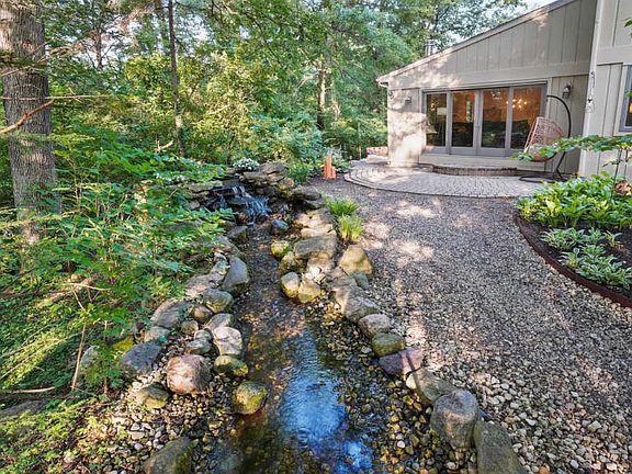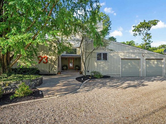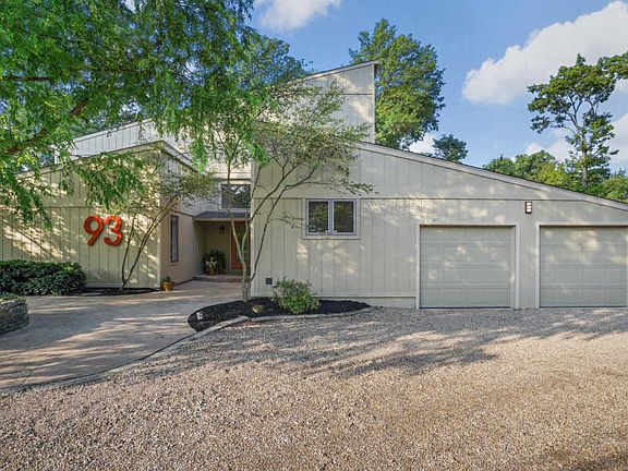 This stunning mid-century modern home is incredibly spacious & open. But yet, being perfectly surrounded by nature, it is cozy at the same time. The 3 gas fireplaces & earth tones throughout the home only accentuate this warm & relaxing vibe. The 1st floor is a dream for entertaining, w/ scenic views through every oversized window & door. Everything in the kitchen is new & high end: Bosch appliances, herringbone tile backsplash, a quartz waterfall island w/ bar seating. Make a cocktail in the bar by the island and take the party to the even larger living room w/ plenty of space for dining, if desired. Even an evening catching up on laundry is glamorous in the massive 1st floor laundry room. End your evening in a chair by the fire in the owner's suite, featuring the bathroom of your dreams.