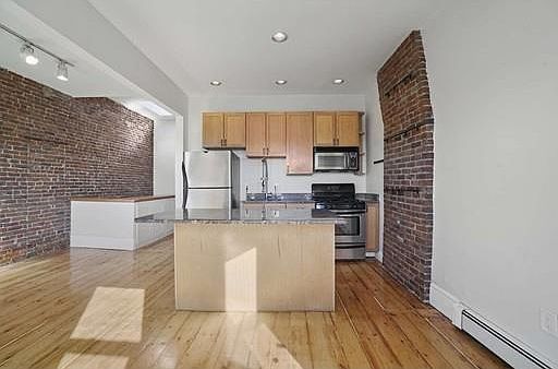 Beautiful, sunny and updated perfectly describe this great two bedroom apartment in historic Fort Hill. This well-maintained, classic brick row house offers wide plank hardwood floors thru-out, a large private deck, tastefully updated bath, Bay Windows and a full Updated kitchen with gas cooking, dishwasher, and disposal. Laundry in the unit and parking. Short walk to Orange Line. Jamaica Plain, close to South End, Harvard/Longwood Medical Area.