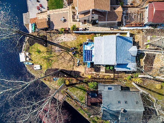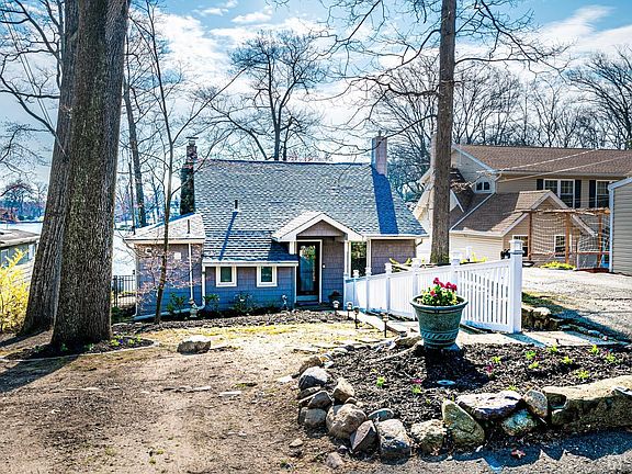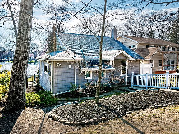 Lakestyle living at its best nestled in the prestigious Rainbow Lakes community on serene Rainbow Lake. This exquisite property boasts breathtaking lake views from nearly every room, offering a picturesque retreat. Featuring 2 bedrooms and 1 full bathroom, this home is adorned with modern amenities and stylish upgrades throughout. The kitchen showcases a lake view, wood floors, a new refrigerator, recessed lights, a microwave that vents out, gas stove, dishwasher, and a convenient pantry for storage. The living space in back of house is a true gem, with vaulted ceilings and stunning lake views, providing additional living space perfect for a dining area, and office space. Step outside through sliding doors onto the raised wood deck, complete with a charming metal pergola, ideal for soaking in the tranquil lake vistas. The inviting living room boasts a cozy wood-burning fireplace, creating a warm and inviting ambiance. The first floor offers added convenience with laundry area, first-floor bedroom, and a beautifully renovated full bathroom with tub/shower, luxury vinyl tiles, and marble vanity top. Upstairs, discover a spacious second BR w/panoramic views of the lake, recessed lights, and ample closets. Additionally, the home includes a basement with outside entrance, perfect for storage or potential expansion. Outside, a new fence provides a sense of privacy and separation from the lake, while the dock offers endless opportunities for lakeside enjoyment. Enjoy a game of tennis or one of the community's many other amenities. Location, location! This waterfront home also boasts easy access to all major highways and the commuter rail. And with a brand new roof, furnace, central air, hot water heater, and fully updated electric, this gem is move-in ready! Showings start 4/13