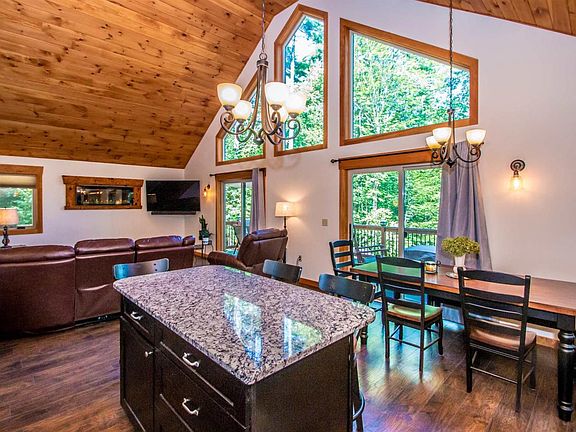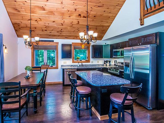 This gorgeous chalet with 3 bedrooms and 3 baths boasts winter views of Mount Washington. Constructed in 2019, it offers a bright open floor plan with first floor master, granite kitchen and tile baths, complete with high quality wood finishes. Lower level family room opens to the large back yard. Cedar siding with stone ascents and a covered porch at the entry give that mountain cabin feel. Sit out on your view facing deck and take in the sounds of nature and the starry night sky. Rockhouse Mountain has an association beach and playground. It's the perfect mountain retreat.