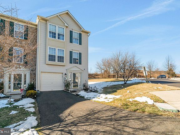 Don't miss this lovingly cared for end-unit at the desirable Terrace of Montgomery community! Enter the foyer to find hardwood floors throughout the first level, along with a half bath, laundry room, large living space and access to the paved rear private patio (one of few in the neighborhood). On the second floor you'll find a sunny kitchen with white cabinetry, granite counters, an island with barstool seating, a kitchen dining area with lots of windows and a large dining room or sun room, currently being used as a home office. Off the kitchen, PELLA slider leads you to the 400 sq. ft. oversized wrap around deck with privacy wall, perfect for entertaining. A large family room completes the second level. On the third floor you'll find the spacious master suite with 2 walk-in closets and full bath with stall shower and soaking tub. The 2nd master suite features a Jack and Jill style bath which was updated in 2019. The 2nd & 3rd level are carpeted creating a neutral look and a WiFi Nest thermostat offers added convenience. The WiFi enabled one car attached garage. Located near the 202 bypass and all the Montgomeryville area shopping, along with low HOA fees, this home is perfect for low maintenance and convenient living. Showings begin March 1st- schedule your viewing today! This one won't last long!