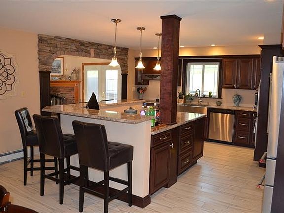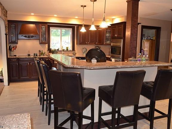 Multitude of features that will convince you to make this your next home including completely updated Eat-In-Kitchen in 2016 featuring new cabinets, Wolf convection double wall oven, flat ceramic indu ction cook top, SS appliances, granite counters, large island surrounded by seating for 6, Large Liv Room w Cathedral ceiling, Bay window, Fireplace and French doors to escape to the private patio, updated baths, Dry bar area w wine refrigerator. Dining Room currently being used as Bedroom. 2nd floor you find a Master Bedroom Suite w a walk-in closet and Master bath updated in 2014 w jetted tub and oversized tiled shower w bonus Rain Shower head. If that's not enough a finished Rec Room in the basement, above ground oval shaped pool and 3 acres of property w building at the top of the hill for a variety of uses.