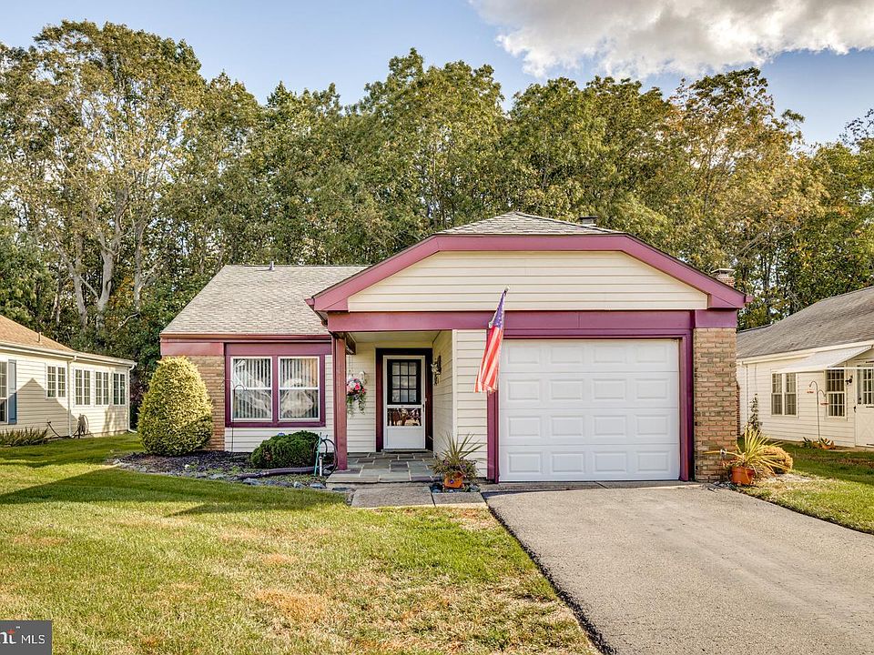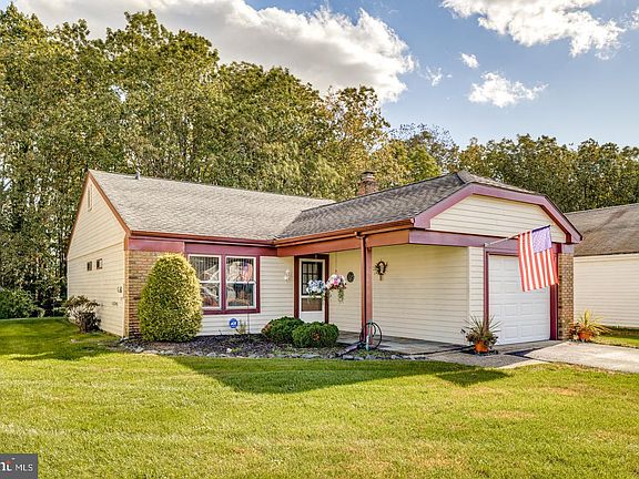 Backing to the peaceful woods of Lookout Park, this cozy rancher on "Big Hill" awaits your personal touches! The sunroom is the perfect spot to enjoy the sunrise with your wake-up cup of mocha. The wood-burning fireplace and insert with blower will keep you toasty on those cool winter nights. Along with the shelves in the garage, the floored garage attic offers even more storage space for your hobbies and holiday decor. Leisuretowne is a 55+ active adult community with lots of activities and features including 2 pools, tennis courts, shuffleboard, fitness center, several lakes, hiking and jogging trails, bus transportation to the grocery store, and more; all included with an incredibly low monthly association fee. This home is being sold as-is and the seller will provide the C.O. Make it yours today!