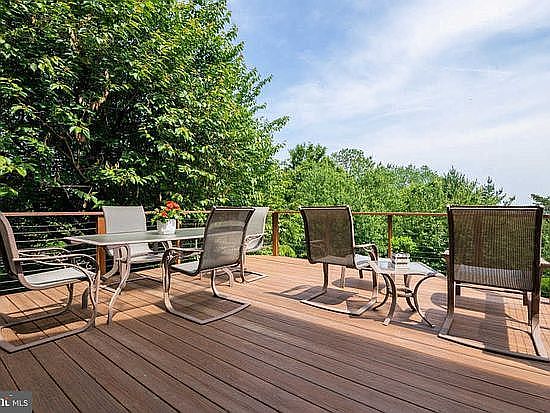 You must see this beautiful 4 bedroom, 2.5 bath, Wyomissing Hills 2-story! With 2,502 square feet, plus a finished walkout basement, there is plenty of living space to enjoy within this gorgeously appointed home. Upon entering, you will love the gently turned staircase and the hardwood floors that lead you into the grand living room complete with recessed lighting, crown molding, tiled wood-burning fireplace, corner and picture windows, and a huge back window to enjoy the amazing far-off countryside views while staying comfortably inside. The graceful dining room has hardwood floors, chair rail molding, a built-in corner cabinet, a large bow window, and direct access to the deck which was completely remodeled in 2020 with new railings, composite decking, and an improved stairway. Back inside, the dining room flows seamlessly into the updated modern kitchen with white cabinetry, recessed lighting, stunning Quartz countertops, subway tile backsplash, newer stainless steel appliances, gas cooking, awesome window over the sink, and large pantry with a rustic sliding barn door. Also on this level, you will find a main floor bedroom with a bow window, built-ins, and its own half bath, which could also be used as a private office. Upstairs you will find 3 nicely-sized bedrooms, all with hardwood floors, and two of which share a large hallway bathroom with a double-sink vanity and large glass block accent wall. The master bedroom suite includes a dressing area with closet, and a remodeled master bath (2019) that has new vanity, new flooring, and a full size glass stall shower. Downstairs the finished walkout basement is equally impressive with recessed lighting, built-ins, and a second wood-burning fireplace. A large laundry room with a utility sink is just around the corner, as well as direct access to the side entry garage. Outside is truly a park-like atmosphere with a two-tiered .58 acre lot that has a pretty tree-lined backdrop with miles of panoramic views beyond. There is also an electric pet fence running the perimeter of the home. So come see this wonderful home today! You will not be disappointed. A one-year Cinch home warranty is provided.