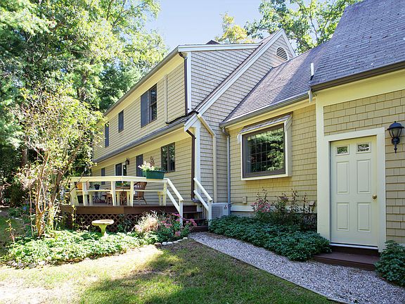 Nestled among perennial plantings in a private .45 acre lot in desirable Rolling Ridge Farm this 3-bedroom 2.5 bath Cape Style home boasts hardwood floors, AC and a first-floor primary suite with walk in closet. Located off Great Hill the entrance is on Rolling Ridge Lane only steps to access recreational use of tennis, beach and boating on Lawrence Pond. A generous living room with wood burning fireplace, eat in kitchen with laundry, and formal dining area extends to a deck off the back of the home perfect for entertaining. The second floor has two bedrooms with hardwood flooring AC and a shared bath.