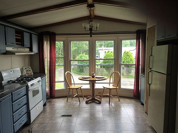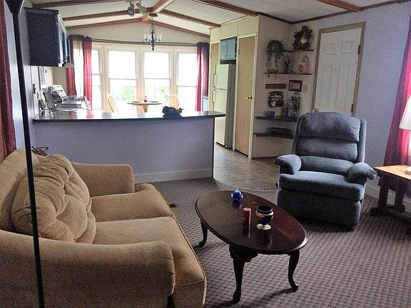 Situated on one of the best lots in the park. One side abuts woods and another abuts a babbling brook. This very spacious home offers an open floor plan with cathedral ceiling, a super large kitchen with bay window that opens to the living room with fireplace, a king size master bedroom with adjoining bath and laundry room and a good size second bedroom. Bathroom offers a double vanity. This home is not perfect but has many wonderful features and could be a spectacular home. The land is rented for $241.00 a month and is subject to increase with the approval of the Springfield Rent Control Board. The lot rent includes water/sewer, dumpsters and road maintenance. The park owner pays the real estate taxes. All occupants need to be approved by the park. There is lender financing available for this home with 10% to 20% down and good credit.